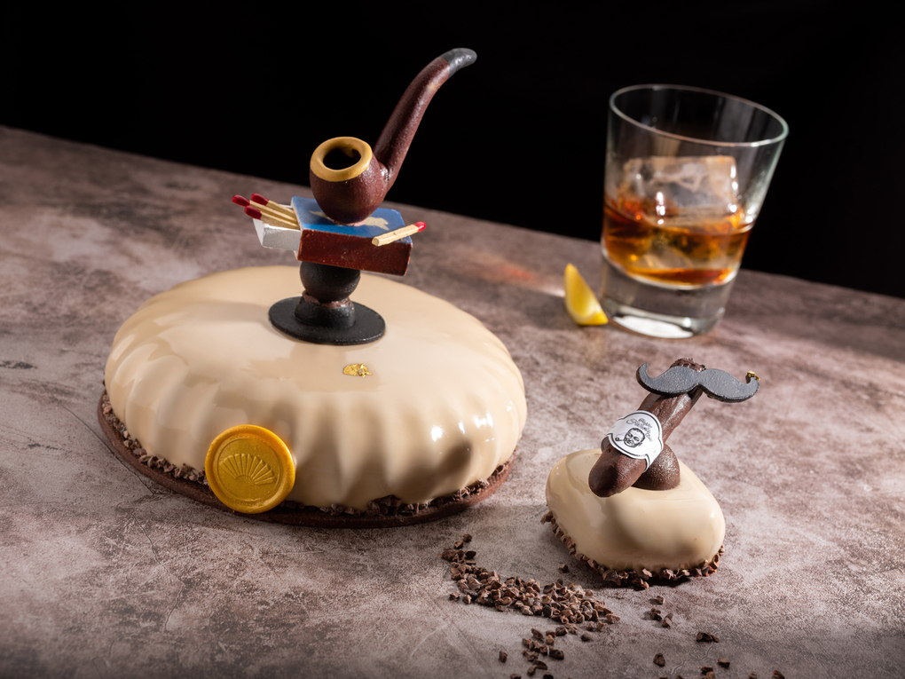行政西點主廚趙崇曦精心設計的父親節限定蛋糕《文華紳士》,以煙斗為靈感發想,以檸檬海綿蛋糕為基底搭佐牛奶巧克力脆餅、檸檬奶油餡及特製的噶瑪蘭威士忌巧克力慕斯;香醇馥郁的巧克力伴隨檸檬清香與威士忌酒香,多層次風味碰撞出的迷人微醺滋味,迷人滋味是獻給家中無敵老爸的最佳選擇! 7吋售價2,088元,精緻小蛋糕售價280元,詳情及訂購請洽文華餅房: (02) 2715 6789。